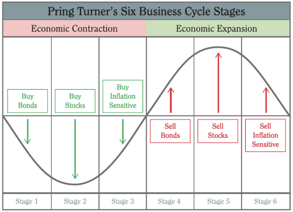 • Market Cycle: Anyone with experience in gardening knows that it's challenging to plant during winter because nothing grows. The same is true for markets. Each asset class (equities, commodities, debt securities) behaves in a certain way within the economic cycle. Each asset class has two turning points: a peak and a trough. This means that a typical cycle has a total of six junctures – three buys and three sells.