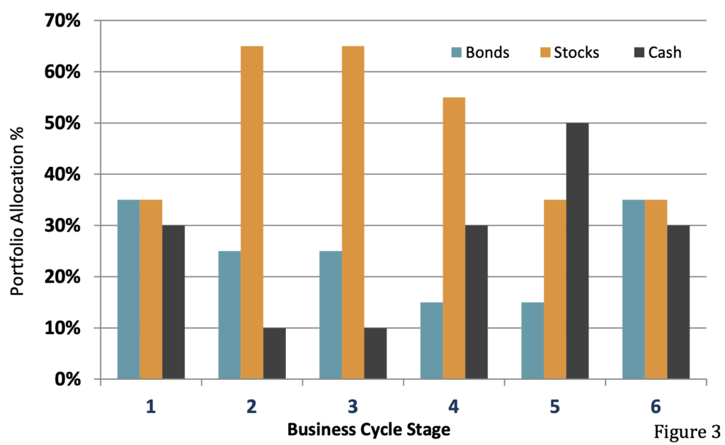 The performance of Martin Pring's barometer has been tested under all types of geopolitical turbulence, wars, economic hardships, monetary conditions, and covers periods of inflation, deflation, crises, expansions, and contractions. It is these barometers that can provide us with a view of the ideal allocation percentage for each stage of the economic cycle: